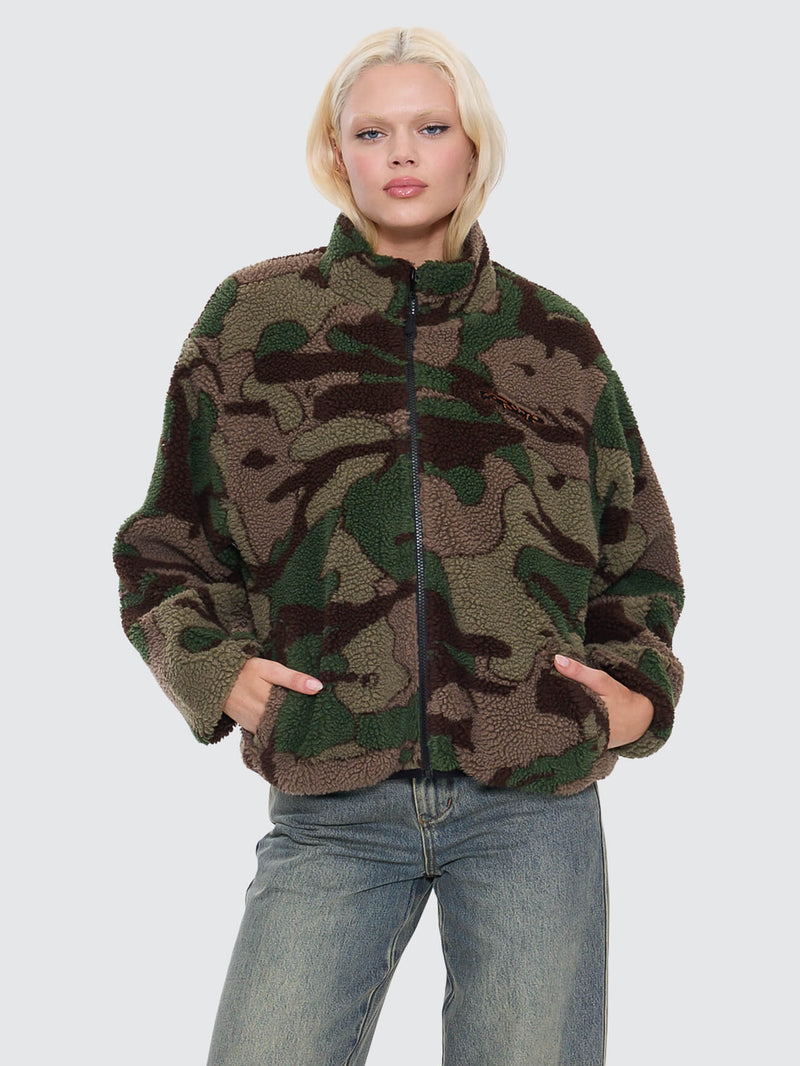 Plain Sight Zip Through Sherpa Fleece - Camo Green